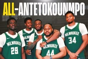 相关链接→美媒晒五人全是字母哥阵容:踢足球的大哥也来凑数了