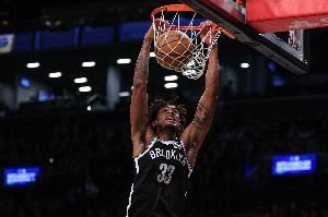 本场比赛,篮网中锋克拉克斯顿攻防打得很尽力,他首发出战34分钟,11中8(三分1中0),罚球6中3拿到19分7篮板5助攻1抢断3盖帽,正负值-9。