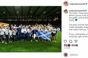 体育资讯11月20日讯 苏格兰队长罗伯逊更新社媒动态,表达了直通世界杯的激动之情。